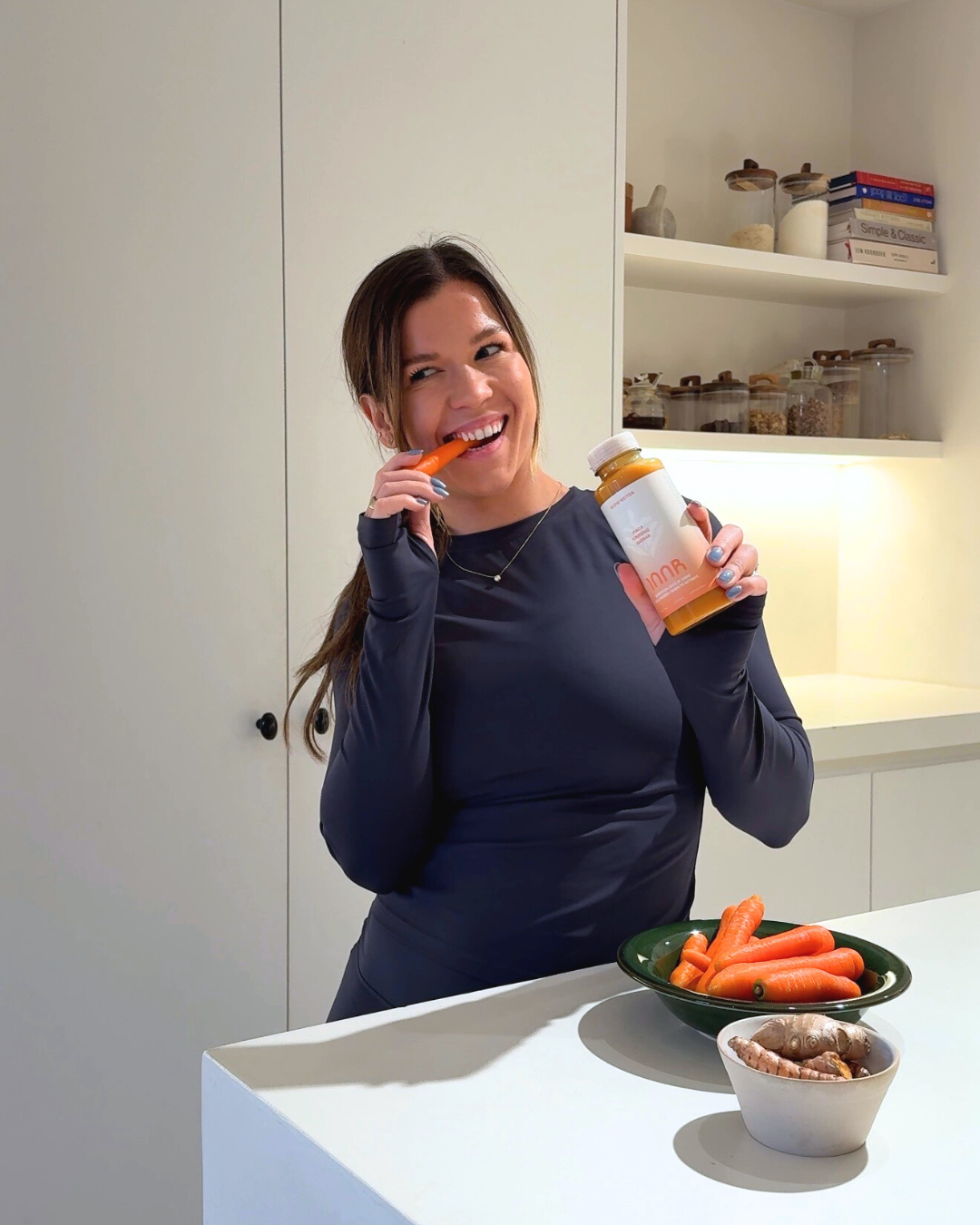 Carrot - Ginger - Maca powder - Baobab powder - Ginger - Turmeric - Black pepper - Pea protein - Fish collagen - Coconut milk - Apple